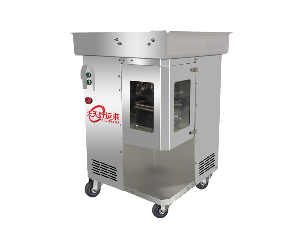 整部機體采用優(yōu)質(zhì)不銹鋼制作,高強度籠式機身緊湊結(jié)構(gòu),表面拋光拉絲處理采用優(yōu)化衛(wèi)生設計,方便清洗,可水槍沖洗,機器刀片為不銹鋼材料,特殊淬火工藝鋒利耐用,兩個獨立刀組,可自由拆卸,切面光滑新鮮使其肉制品薄厚均,高品質(zhì)始終如一,設備帶有萬向剎車腳輪方便移動,實現(xiàn)對無骨肉類及類似榨菜富有彈性的食物切成絲. 切片 切丁,適用于大中小規(guī)模的餐飲或肉類加工企業(yè);